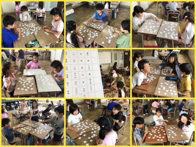 国語の学習で、言葉や漢字の仲間分けを行いました。その学習を生かして、仲間の言葉や漢字で神経衰弱を行いました。同じなかまの言葉が出たらカードゲットです(黄色・青・赤なら色の仲間)。大盛り上がりで楽しそうです。