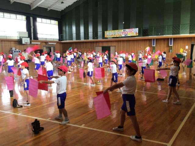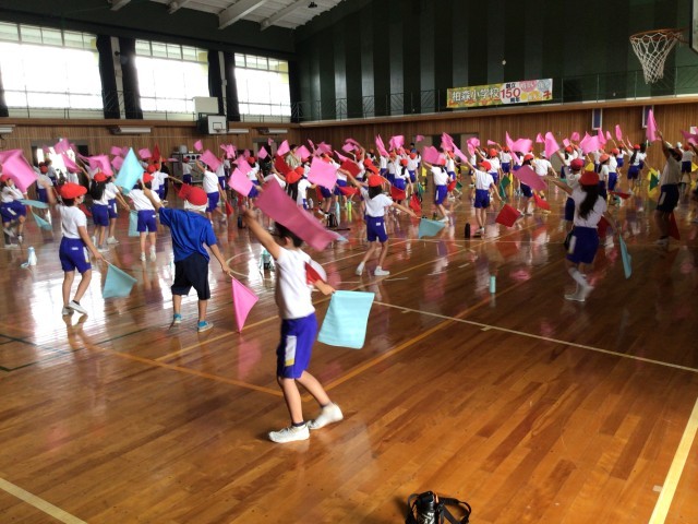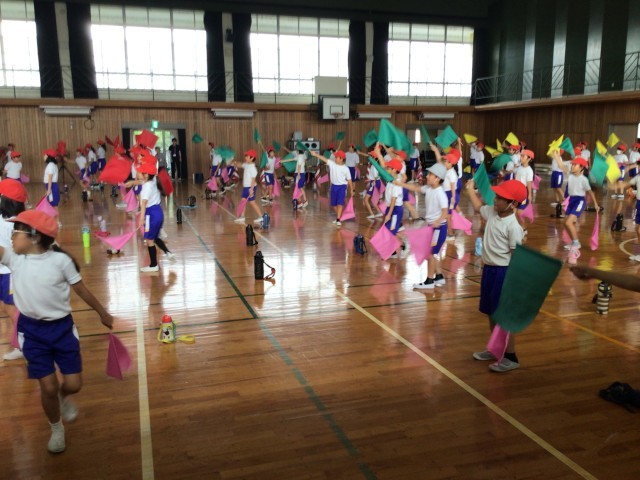 フラッグを使って初めて踊りました。初めてにしては、上手に踊れていました!