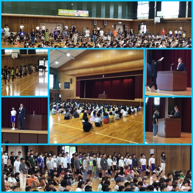 10月14日に後期始業式を行いました。校長先生からは、「努力の結果以上に経過を大切にすること」「仲間と共に目標に向かって頑張ること」についてお話がありました。式の中で、代表の児童がステージ上で自分の目標を発表する場面がありました。自分の言葉で具体的に堂々と話すことができ、全校の見本となりました。式後には、後期学級委員、通学班班長の認証式がありました。一人一人の返事や姿勢から、責任感とやる気が伝わってきました。気持ち新たに後期の学校生活も頑張りましょう!