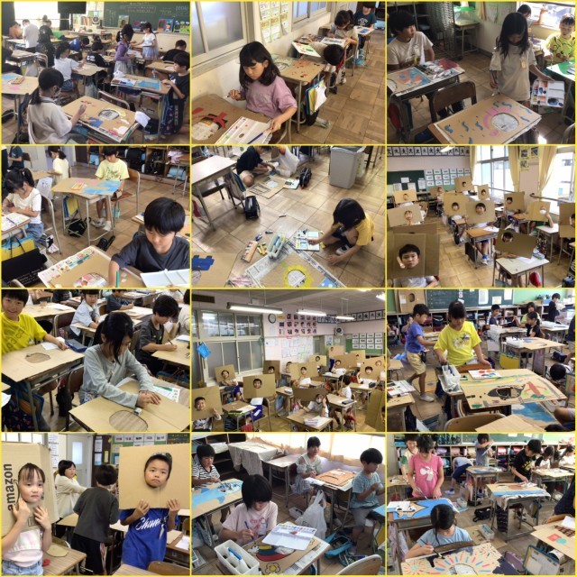 今週の3年生の様子です。図工では、「顔を出したらなんだかワクワク」の単元で、段ボールを使ってワクワクする顔はめパネルを作成しました。段ボールのご準備、ありがとうございました。