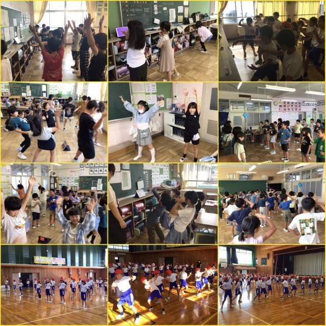 体育学習発表会の練習も続いています。ダンスリーダーをはじめ、どのクラスも休み時間にも練習に取り組む児童が見られ、とても意欲的です。来週からは運動場での練習も始まります。この調子で、ぐんぐん上達していきましょう!