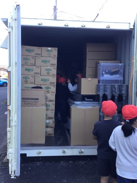 社会科の防災の学習で、校内にある防災備蓄倉庫の見学に行きました。中に入っているものを見て、災害時にどんなことに役立つのかを考えました。実際に見学することで、多くのことを学べました。