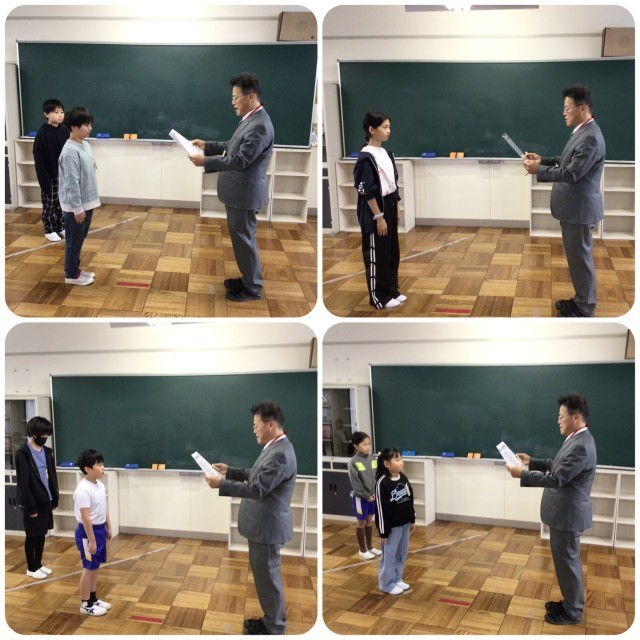 また、朝礼の中で今週末の 12月6日(土)に開催される愛知駅伝 に、選手として出場する児童の紹介がありました。頑張ってくださいね。