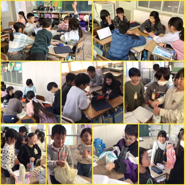 先週の3年生の様子です。12月に入り、寒さが厳しくなってきましたが、一生懸命頑張っています。「読書まつり」で書いたオススメの本を紹介する「読書郵便」を交換し合って、本に親しみました。図工では、「ねん土マイタウン」の学習で、あったらいいなと思う町を自由に作りました。