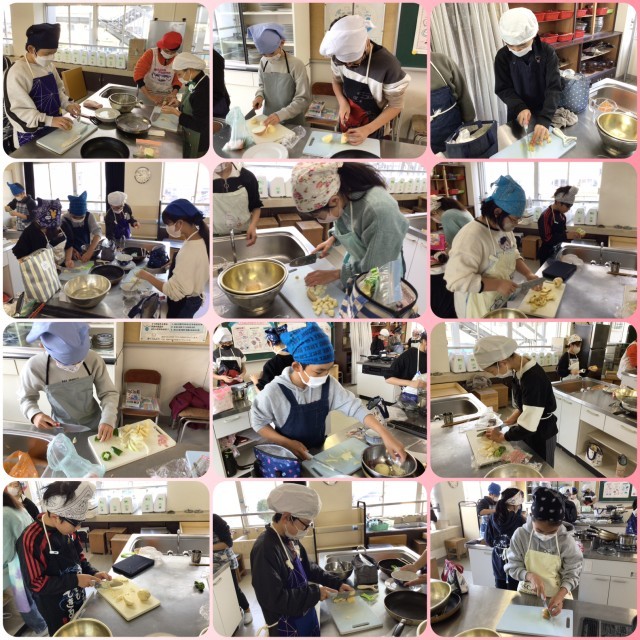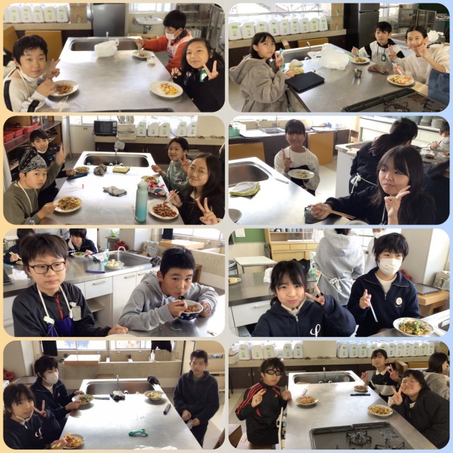 今日は1組が調理実習を行いました。今日の日のために、ジャガイモを使った料理を調べたり、おうちの人と話し合って材料を準備したりしてきました。「一回練習で作ったから大丈夫!」「火が通りやすいように、ジャガイモを薄く切って炒めるよ」など、それぞれが作戦を考えてきました。全員が手早く安全にでき、調理実習は大成功!!美味しくいただくことができました。
