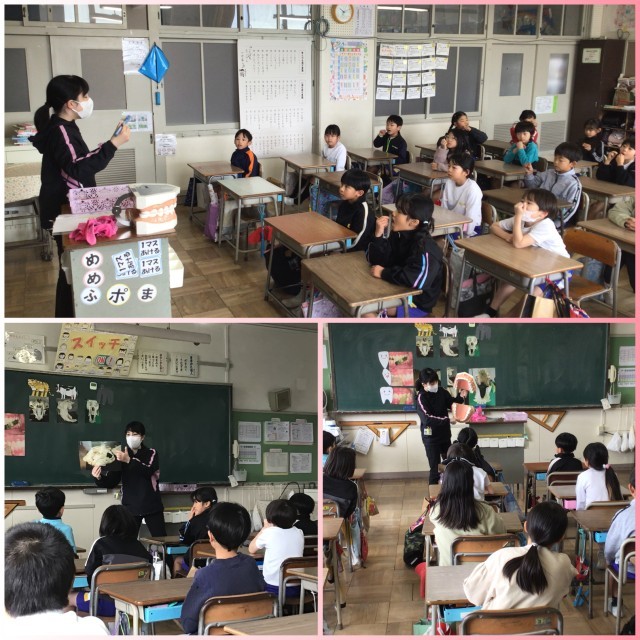 今日は身体測定を実施し、その後に保健指導がありました。さまざまな動物の歯の様子や、歯の種類について学びました。また、歯磨きをどのようにするときちんと磨けるのかも知り、これからの健康的な生活に向けて歯を大切にしようとする意識を高めました。