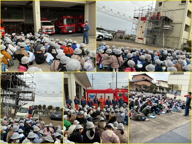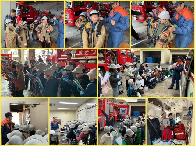 今日は、先週雪により延期になった消防署見学に行くことができました。丹羽消防署の消防本部に行き、消防士の仕事や消防署の設備について学ばせていただきました。救助訓練や放水訓練を見させていただいたり、建物内にある部屋、消防車両の種類についても教えていただいたりしました。火事を消すだけでなく、火事を予防することも大事な仕事だと知りましたね。消防士の方がお話ししていたように、ぜひお家でも今日学んできたことをお話しして、みんなで火事を防いでいきましょう。
