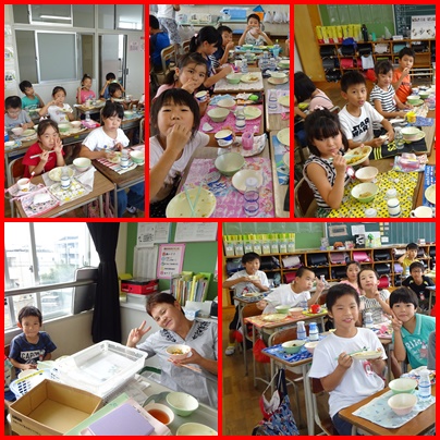 久しぶりにクラスの仲間と再会し、給食を食べました。夏休みの思い出話に花がさいているところもあり、楽しい給食の時間となりました。