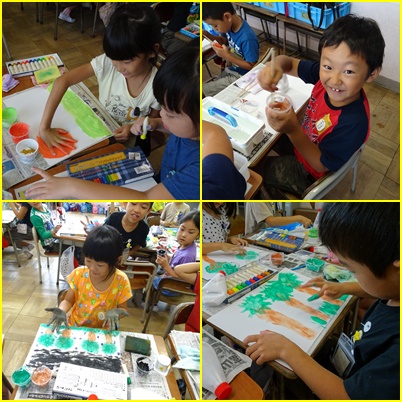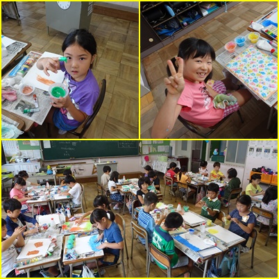 液体粘土に絵の具を溶かしてとろとろ絵の具を作って、絵を描きました。