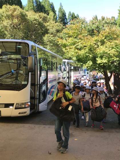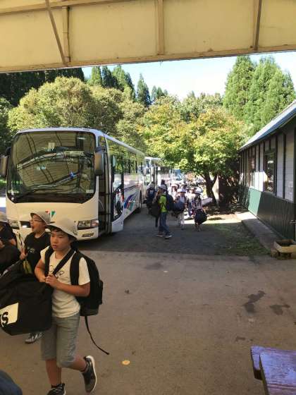 予定より、少し遅れましたが、バスは郡上八幡自然園に到着しました。