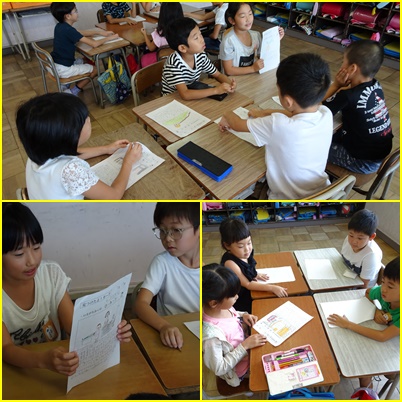 班での交流の後、全体で発表をしました。町探検への期待が高まります。