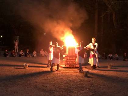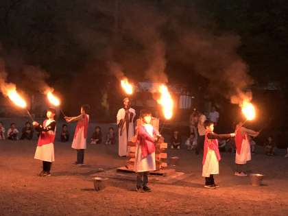 火の子たちが火の神から火をいただき、無事に点火しました!