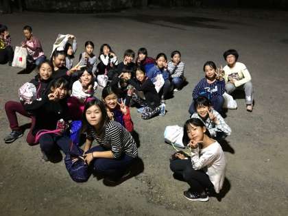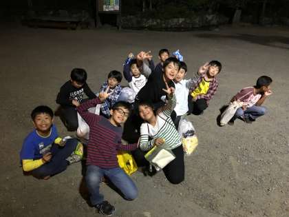 2組の子どもたちが、お風呂に入るため、栗の木広場に集まって来ました。自然園のお風呂は大きなタライのようなヒノキのお風呂です。ゆったり浸かって、今日の疲れを落として来てください。