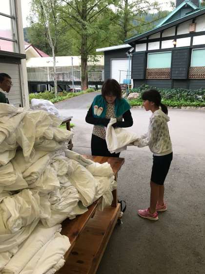 使用したシーツは返却場所まで持っていき、先生のチェックを受けます。