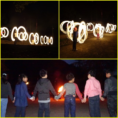 みんなで炎を囲み、踊りやゲームで楽しい時を過ごしました。