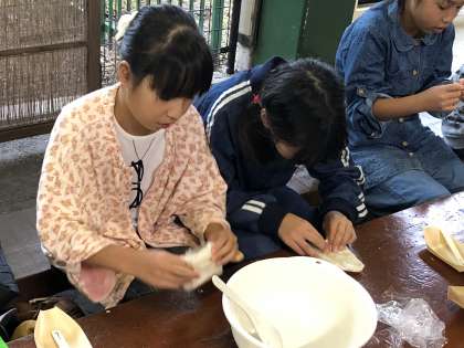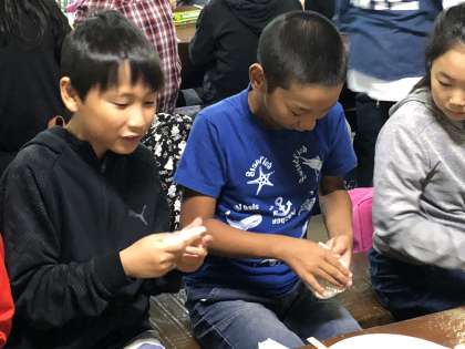 しっかりご飯をつぶして、もちもちの五平餅を作ります!