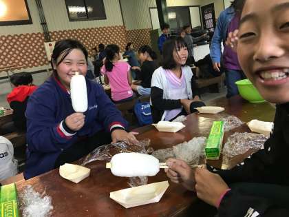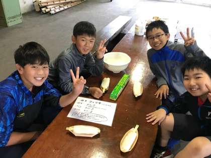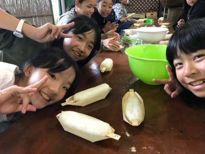 各自のお腹のキャパシティに応じて取り分けたご飯をこねて串に巻きました。
