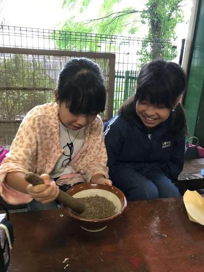 荏胡麻もすって、タレにまぜこませ味に深みをもたせます。