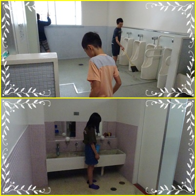 2年生のトイレを掃除してくれているのは、5年生。