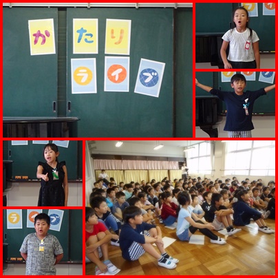 10月にある低学年語りライブに出場する代表を選ぶために、それぞれのクラスで代表に選ばれた4人の語りを聞きました。