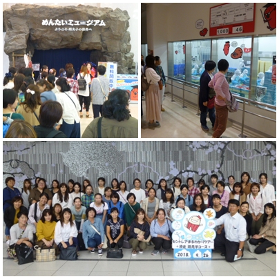 はじめに、「めんたいパークとこなめ」で明太子の原料となる「スケトウダラ」のすむ北の海の様子、明太子の製造工程などを見学しました。