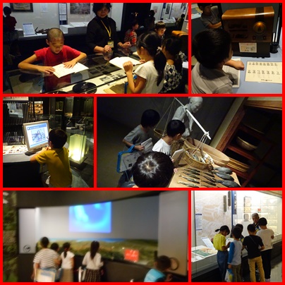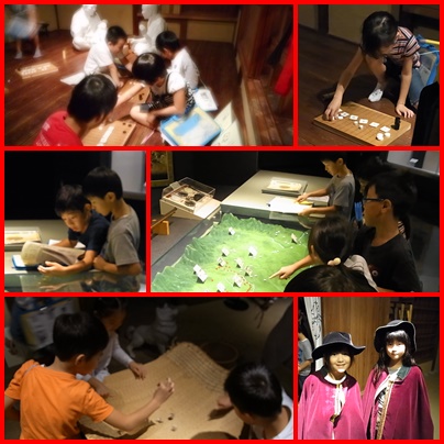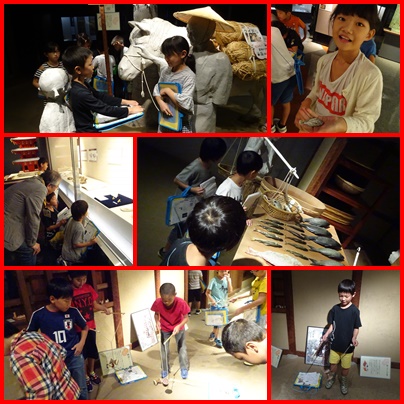 展示されているものだけではなく、土器パズルや土器の模様づけ、貝ごま、ばんすごろく、浮世絵の版画など体験することができるコーナーがたくさんありました。子どもたちは目を輝かせ、展示物を観察したり、体験していました。