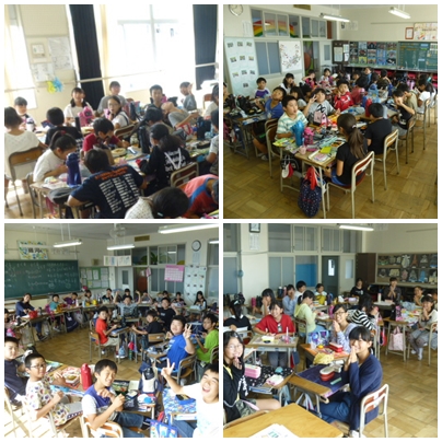 台風は過ぎ去り、暴風警報は未明に解除になりましたが、今日は給食がありません。お弁当を持っての登校です。4時間目が終わり、自分のお弁当を取り出すとみんなで「いただきます!」机を円卓にして食べている学級もありました。