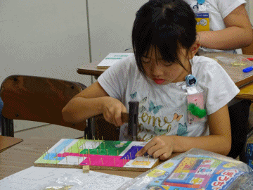 図工では、3年生にとって初めて使う金づちで、くぎを打ち作品を作っています。子どもたちは少し戸惑いながらも、とても真剣に、夢中になっていました。とても細かい作業になります。安全に気を付けて、素敵な作品を完成させていきたいと思います。