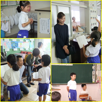 個人での発表の後、参観に来られた方に個人で語りを聞いてもらう場面のあるクラスもありました。自分の家族とは違う人に聞いてもらうことに、ちょっと緊張している様子も見られましたが、保護者の方に優しく受け止めてもらえて、うれしそうでした。