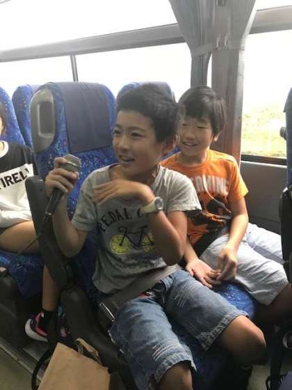 バスレク第1弾は、手叩きゲームで盛り上がっています。