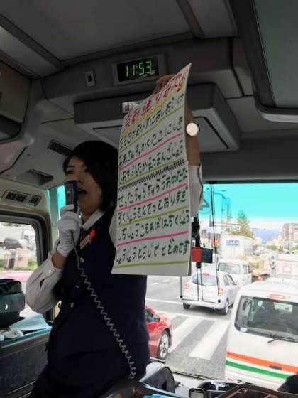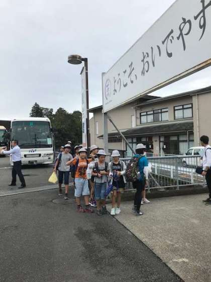 バスの中で、京都の道の名前のつけ方を教わりました。ガイドさんに道の名を連ねた歌を歌ってもらい、自分の居場所を確かめながらバスの旅を続け、12時03分に昼食会場に到着しました。