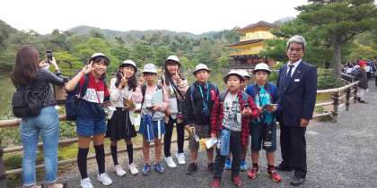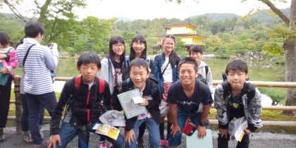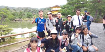 みんなが分散地に選んだ金閣寺。実物の美しさに、感動です。建物や、池のにごりなど、運転士さんにユーモアを交え詳しくガイドしていただきながら、見学しました。