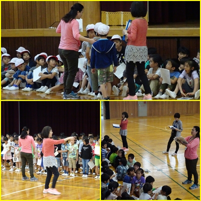 学芸会の練習が徐々に始まります。今日は、自分の「もちば」を確認しました。