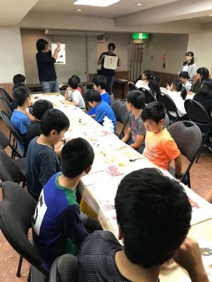 1.2組の友禅染が始まりました。絵柄は、舞妓と金閣寺です。型は全員同じものですが、レイアウトと色選びに個性があらわれます。