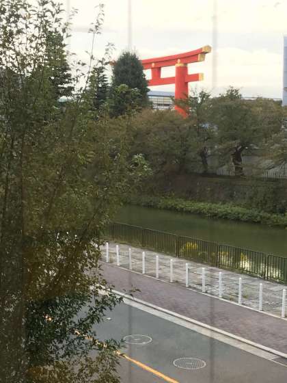 宿舎の窓からは、平安神宮の大鳥居が見えます。
