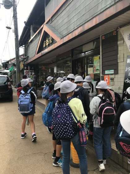 予定の見学を済ませた班から、昼食会場の古都屋にてチェックを受けます。