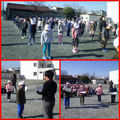 「1、2、3、4…」と1・3年生の元気なかけ声を響かせて全員で準備体操をした後、8の字跳びを行いました。