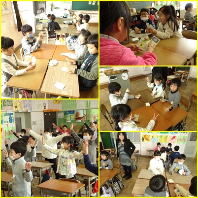今年度最後の外国語活動がありました。いろいろな動物が描いてあるカードを使って、ババ抜きゲームをして英語に親しみました。今日は「Do you have〜?」の話形を使いました。