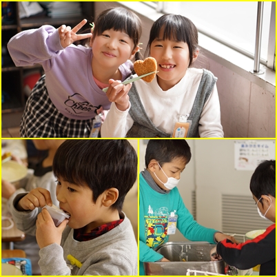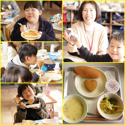さて、今日の給食はバレンタインに因んで、「ハート」あふれる給食でした。