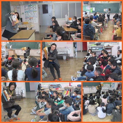 朝はコロボックルさんの読み聞かせでした。元気よくあいさつをした後は、読み聞かせを聞きながら、笑ったり考えたりして、それぞれのクラスで楽しみました。すてきな本をありがとうございました。