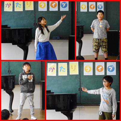 今日は、各クラスでの予選を勝ち上がった4名で、後期の学年代表を決める決勝戦を行いました。身振り手振りを加え、素敵な語りを披露してくれました。