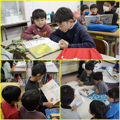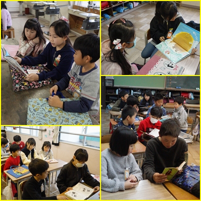 ペア読書がありました。4年生のお兄さん、お姉さんに、絵本の国から借りている本を読んでもらいました。