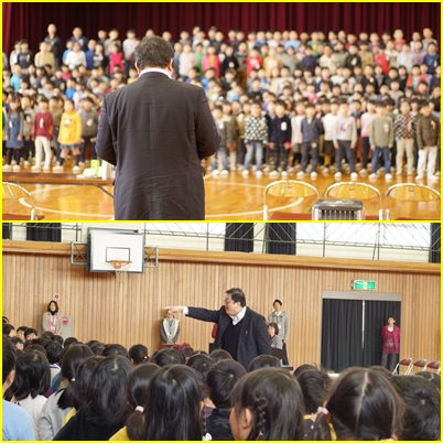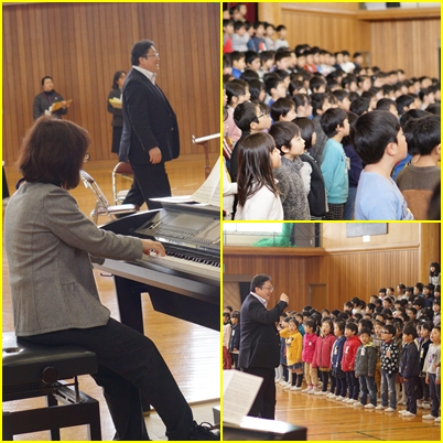 全校合唱の「PRIDE」を美しく歌うためのコツをたくさん教えていただけました。