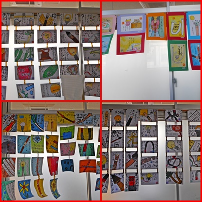 3年生の学習をテーマに、絵手紙を作りました。画面いっぱいに絵を小筆や筆ペンで描き、水彩絵の具で色を塗りました。絵に合う一言をどうするか子どもたちは、悩みに悩んで決めていました。最後に食品トレーで落款を作り、仕上げました。