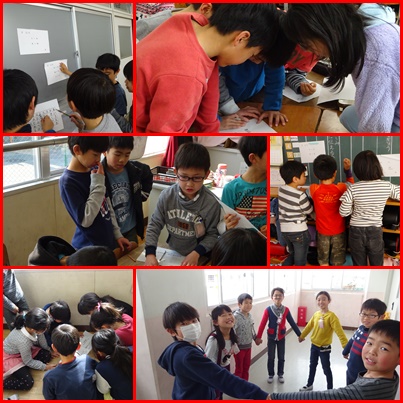 学活の時間に1チーム7〜8人に分かれ、謎解きを行いました。チームごとに知恵を絞り、答えにたどり着いたチームもあったようです。子どもたちからは「1人では解けなかったけど、みんなでやったから解けた!」、「難しかったけど、楽しかった!」、「本気だした!」などの声があがっていました。