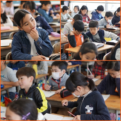 いろいろな授業で、授業開きがありました。国語では詩歌の中から言葉を探す遊び、算数は四角形を探す考え方、社会は5円玉を使った学習をしました。はじめの授業では新たなノートの使い方や授業の進め方を学びます。みんな張り切って学習に望んでいました。