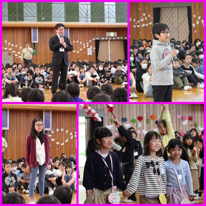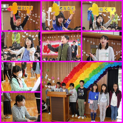朝の時間を利用して、1年生を迎える会をしました。昨年度の代表委員が中心となり、会を計画・運営しました。3つのかぎと語りの紹介や合唱披露など、素晴らしい発表ができました。きっと1年生にも楽しんでもらえたと思います。