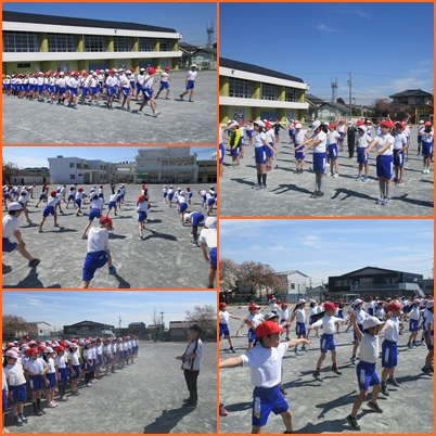 今日は、主に集団行動と準備体操のやり方を確認しました。