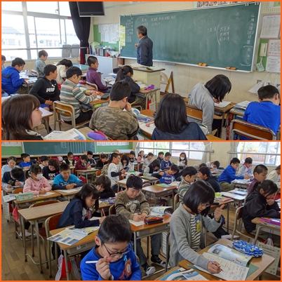 3組の社会の時間です。地球にある海洋についてプリントにまとめていました。真剣な顔つきでプリントや資料とにらめっこをしています。