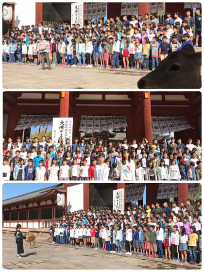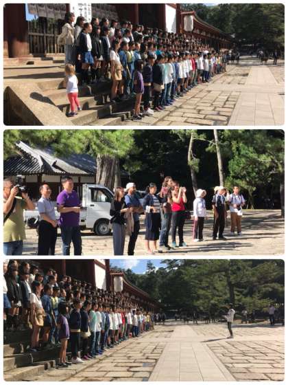 今日のメイン活動の東大寺での合唱を行いました。澄んだ青空に響き渡るハーモニーになりました。